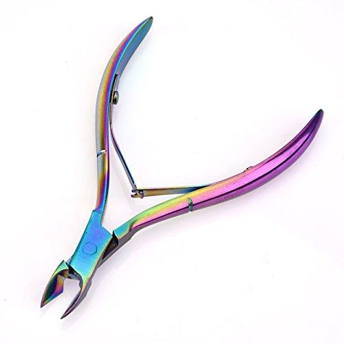 Delicate 1 pc nail cuticle cutter rainbow nipper clipper finger toe dead skin scissor remover manicure art trimming tool\n\nFeature\n1. Professional remove dead skin.\n2. Gentle enough to work on cuticles and weak or splitting nails.\n3. Durable spring which can be used for long time.\n4. Suitable for professional salon use or home use.\n\nDescription\nType: Manicure tool\nMaterial: Stainless steel\nPackage Weight: 0.13lb. (0.06kg)\nPackage Size: 3.94\'\' x 1.18\'\' x 1.18\'\' (10cm x 3cm x 3cm)\n\nPackage Includes 1 Pc nail art manicure cutter nippers clipper tool