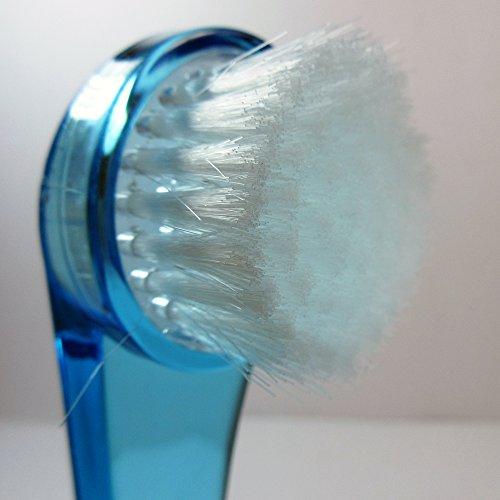This soft bristle facial cleansing brush is a must have if you want your skin to look young and fresh. Measures 5.5 L x 1.5 D, long curved handle allows an easy comfortable cleaning.